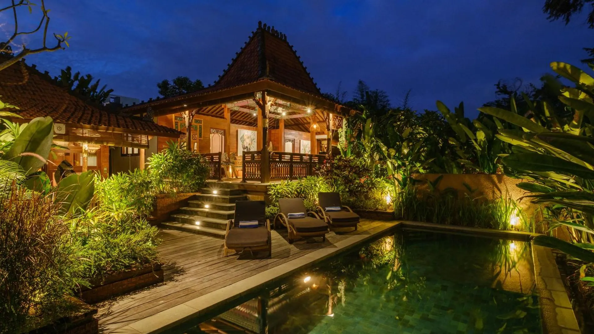 Вилла располагается в районе Peliatan, в паре минут ходьбы от дворца Пури-Сарен. Среди близлежащих культурных достопримечательностей - посещения художественных музеев, менее чем в 1 км. Также можно легко добраться к таким природным чудесам, как Лес обезьян (1,1 км) и Слоновья пещера (2 км).